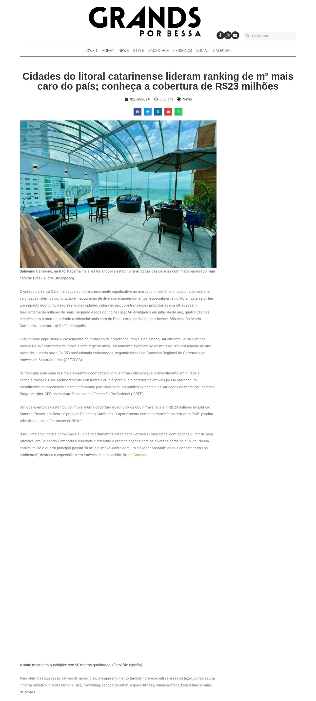 Cidades catarinenses lideram ranking de m² mais caro do país; conheça a cobertura de R$23 milhões